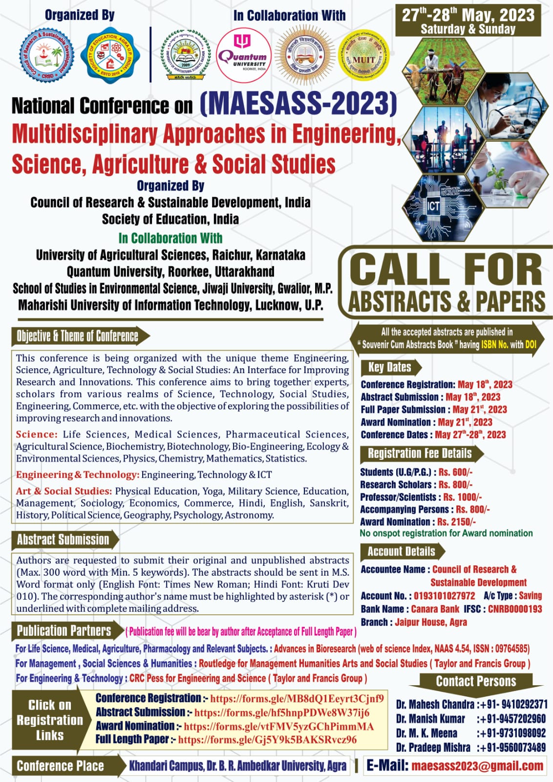 * To foster and promote the new scientific knowledge that has emerged from recent advances in both basic and applied biological sciences in Agriculture, Animal sciences, Forestry and all other disciplines of Biological Sciences.